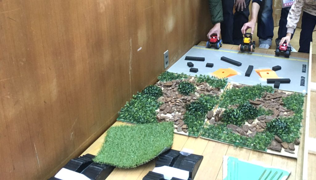 Rd.2で好評だったワイルドミニ四駆による障害物コース。普段あまり走らせる機会のないワイルドミニ四駆を思う存分走らせられるコースを設置しました。コースには前回もあった奈良にちなんだセクションを調整のうえ継承し、新たなセクションも追加。