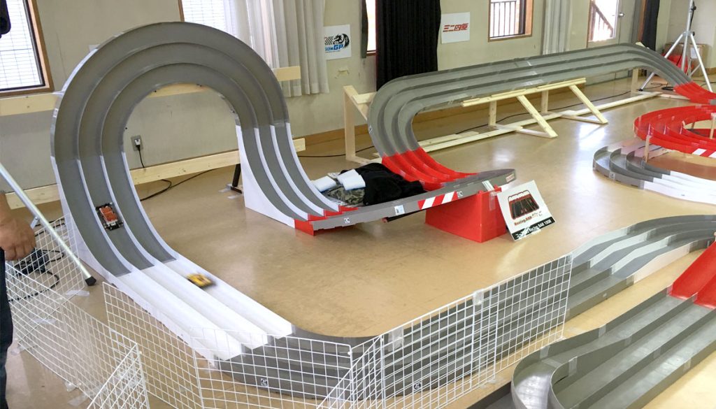 このクラスのみRacingBAR100Rさんからお借りした90度バンクを設置。これにより、ブレーキが強すぎるとバンクを超えられない、しかしバンク直前に置かれた1Pバウンシング(こちらも100Rさんから借用)等コース中の様々なセクションが牙を剥く、難コースと化しました。